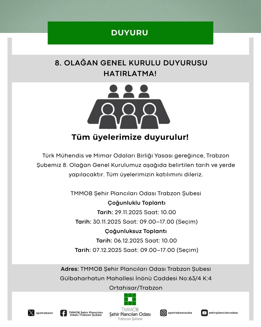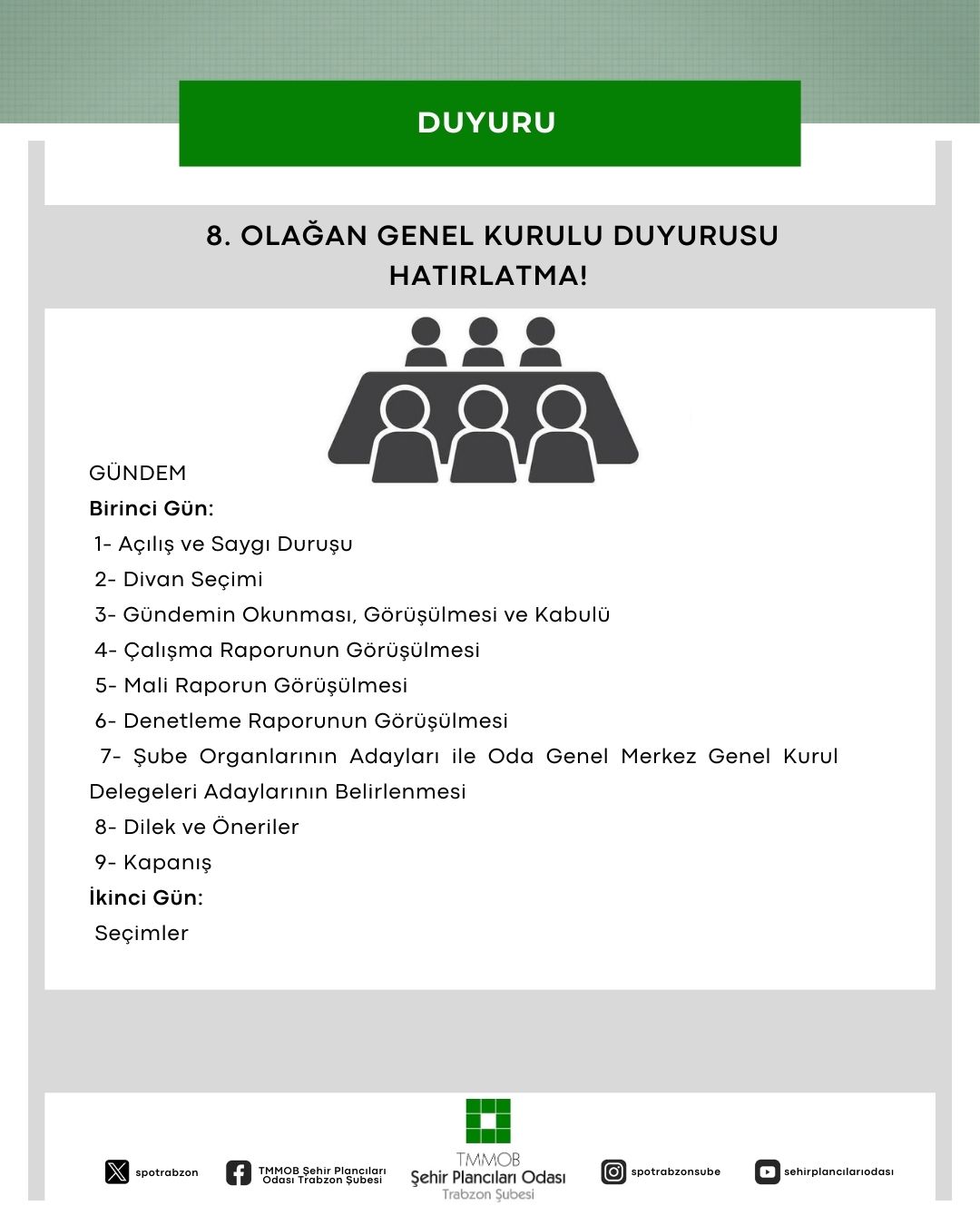 8. OLAĞAN GENEL KURULU HATIRLATMA DUYURUSU!