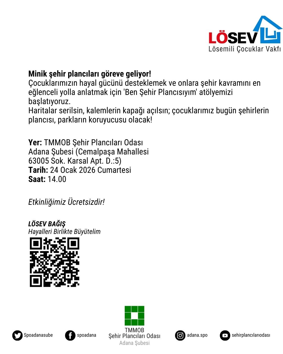 Çocuklarımızın hayal gücünü desteklemek ve onlara şehir kavramını en eğlenceli yolla anlatmak için ‘Ben Şehir Plancısıyım‘ atölyemizi başlatıyoruz.