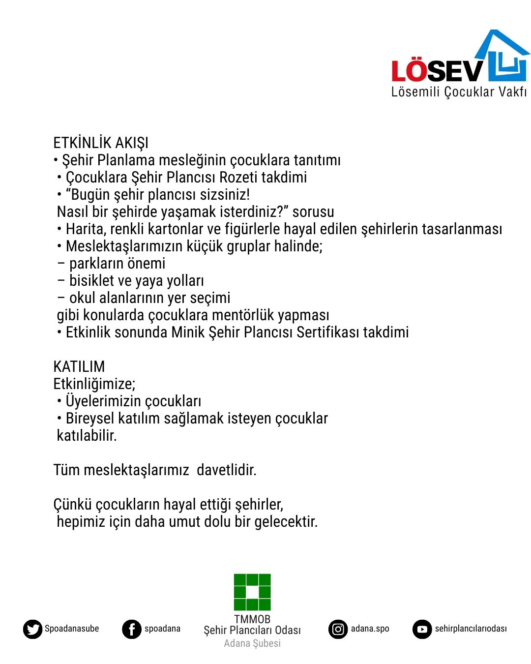 • Şehir Planlama mesleğinin çocuklara tanıtımı
