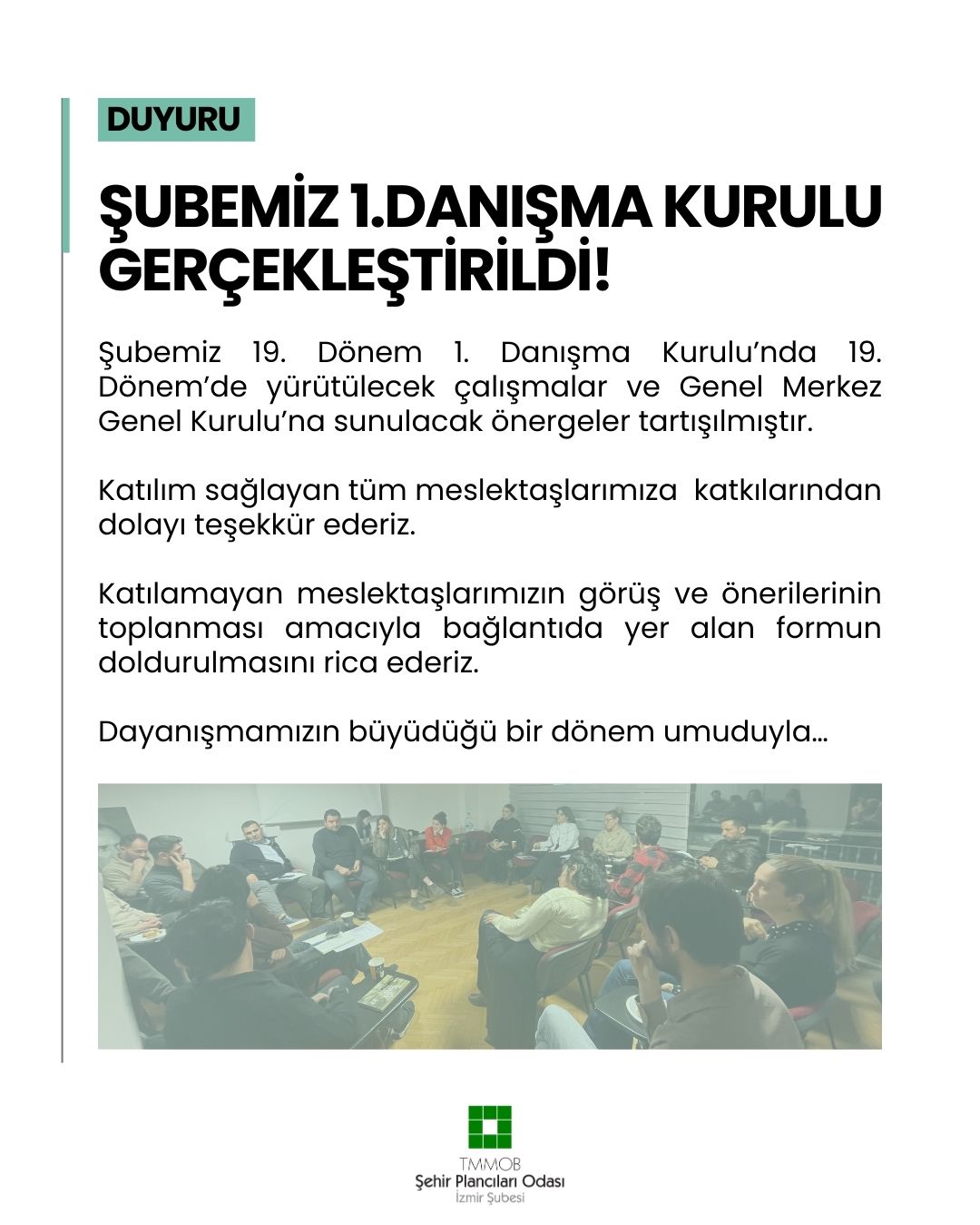 TMMOB Şehir Plancıları Odası İzmir Şubesi 19. Dönem Yönetim Kurulu