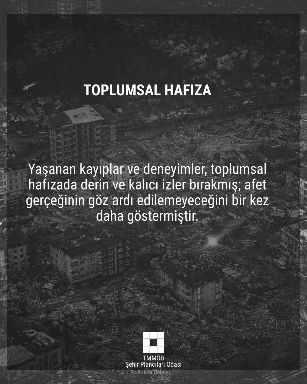 Toplumsal Hafıza: Yaşanan kayıplar ve deneyimler, toplumsal hafızada derin ve kalıcı izler bırakmış; afet gerçeğinin göz ardı edilemeyeceğini bir kez daha göstermiştir.