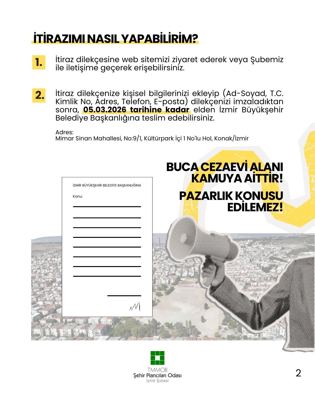 İTİRAZ DİLEKÇESİ: BUCA CEZAEVİ ALANINI YAPILAŞMAYA AÇAN İMAR PLANI DEĞİŞİKLİĞİNE BİRLİKTE İTİRAZ EDELİM!