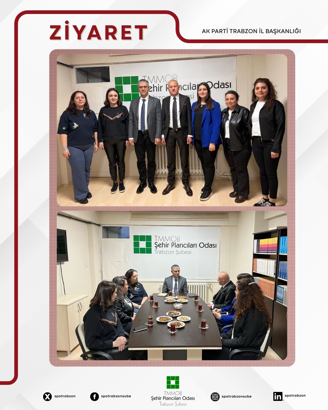 TMMOB Şehir Plancıları Odası Trabzon Şubesi 9. Dönem Yönetim Kurulu olarak, AK Parti Trabzon İl Başkanlığı heyetini şube binamızda ağırladık.