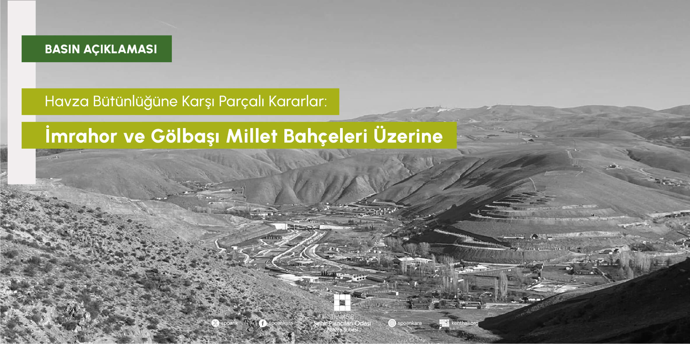 Ankara`nın doğal değeri böylesine yüksek bir bölgesinde birbirine çok yakın iki alanda yürütülen Gölbaşı ve İmrahor millet bahçesi projelerinde mahkemelerce birbirinin tamamen zıttı karar verilmesi hukuk sistemimizin yozlaşmışlığını ve bilimsel kararlardan ne kadar uzaklaşıldığını bir kez daha gözler önüne sermiştir. Aynı havza sisteminin bütünleyicisi niteliğindeki iki alanın bilirkişi raporlarıyla da defaatle kamu yararına aykırılığı tescillenen "millet bahçesi" adı altında betona boğulmasına, ekolojik değerlerinin tahrif edilmesine karşı verilmesi gereken çok net bir karar bulunmaktadır: İmrahor Vadisinin yapılaşmadan arındırılması, 1/25.000 ölçekli 2023 Başkent Ankara Nazım İmar Planında tanımlandığı gibi büyük bir hassasiyet ve özenle havza alanına ilişkin bütüncül bir koruma politikasının geliştirilmesidir. Aynı havza bütünlüğü içinde birbirine tamamen zıt kararların üretilebilmesi, planlama alanının sistematik biçimde siyasal tercihlere göre şekillendirildiğini göstermektedir. Şehir Plancıları Odası Ankara Şubesi olarak; Ankara`nın son kamusal vadilerinin betona teslim edilmesine karşı hukuki, mesleki ve kamusal mücadelemizi kararlılıkla ve sonuna kadar sürdüreceğiz.