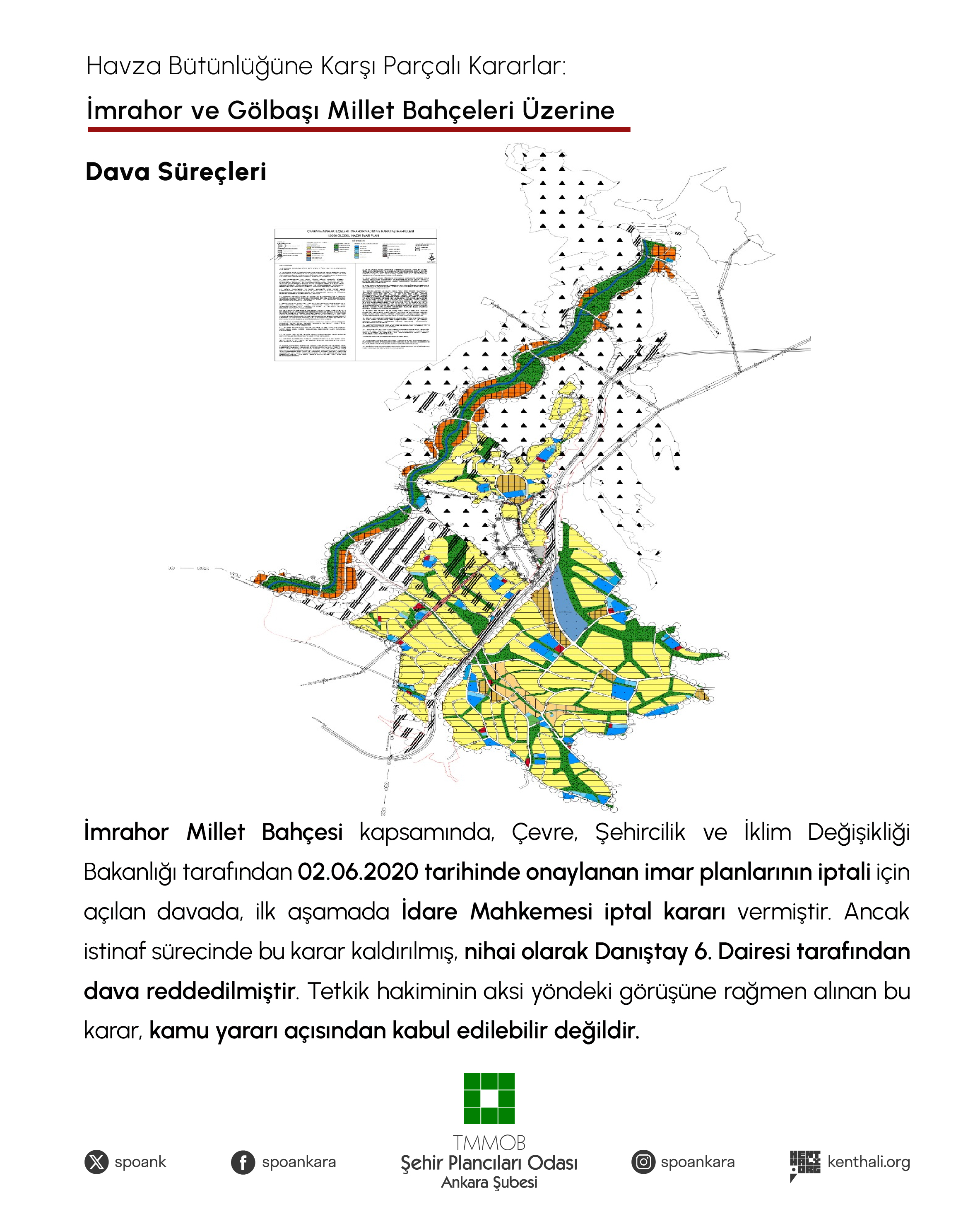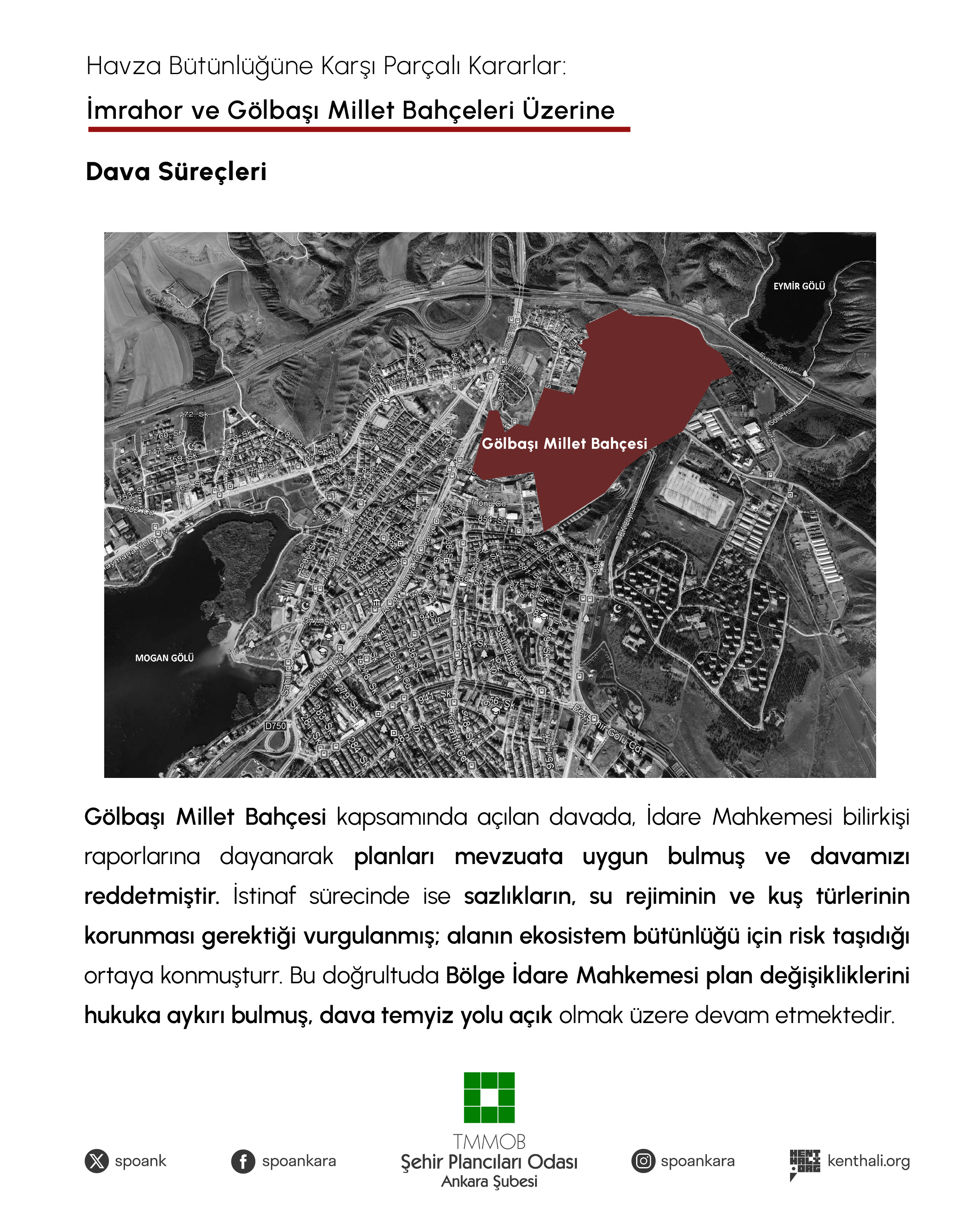 2. Gölbaşı Millet Bahçesi projesi kapsamında Çevre, Şehircilik ve İklim Değişikliği Bakanlığının 10/06/2022 tarih ve 3865903 sayılı Olur‘u ve Cumhurbaşkanlığı Teşkilatı Hakkında 1 Sayılı Cumhurbaşkanlığı Kararnamesinin 109.maddesi uyarınca onaylanan Gölbaşı Özel Çevre Koruma Bölgesi, Gölbaşı ilçesi, Şafak Mahallesinde yaklaşık 72,4 hektarı kapsayan alana ilişkin 1/5000 ölçekli nazım ve 1/1000 ölçekli uygulama imar planının iptali istemiyle açtığımız davada;