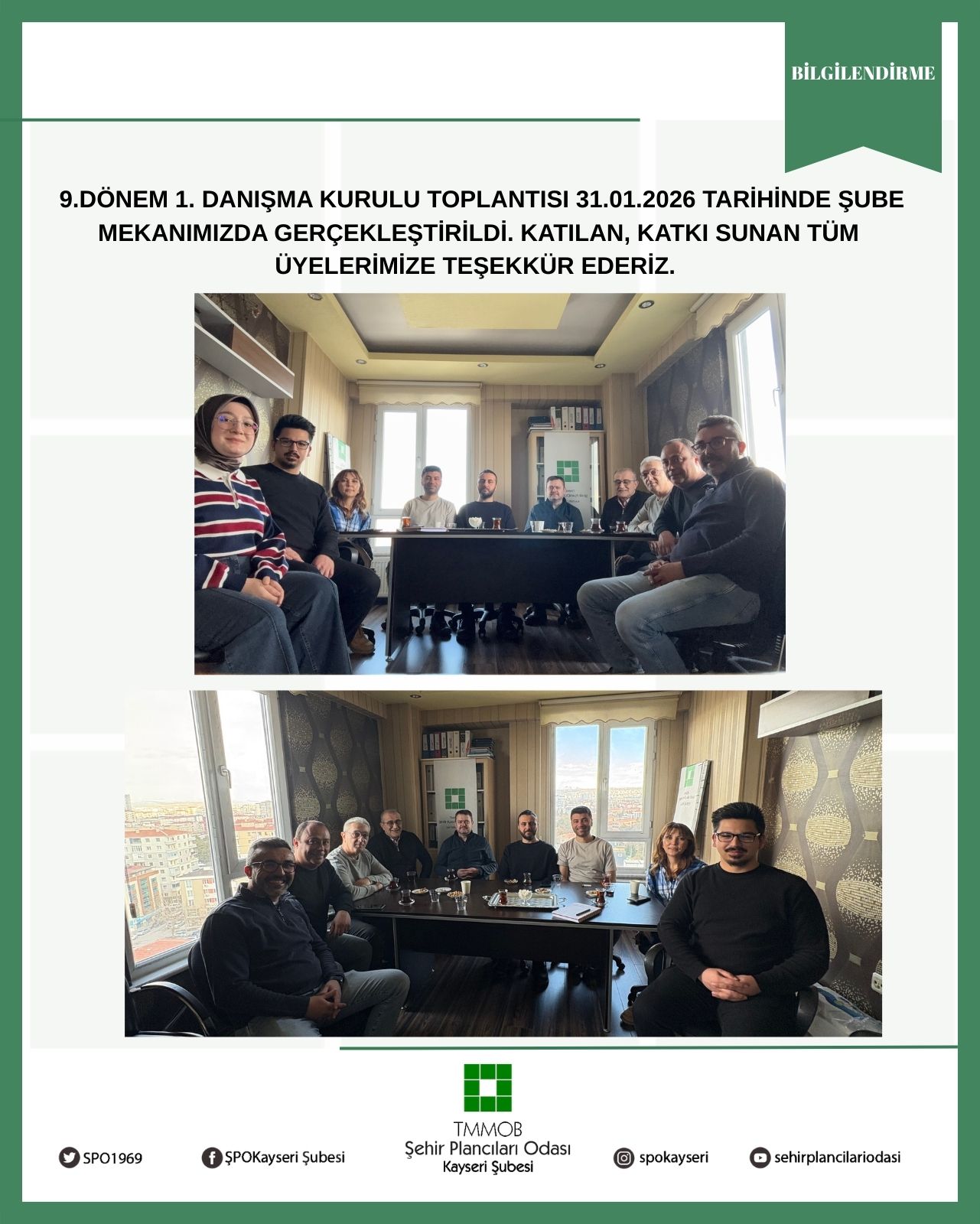 9. Dönem 1. Danışma Kurulu Toplantısı 31.01.2026 tarihinde şube mekanımızda gerçekleştirildi. Katılan katkı sunan tüm üyelerimize teşekkür ederiz.