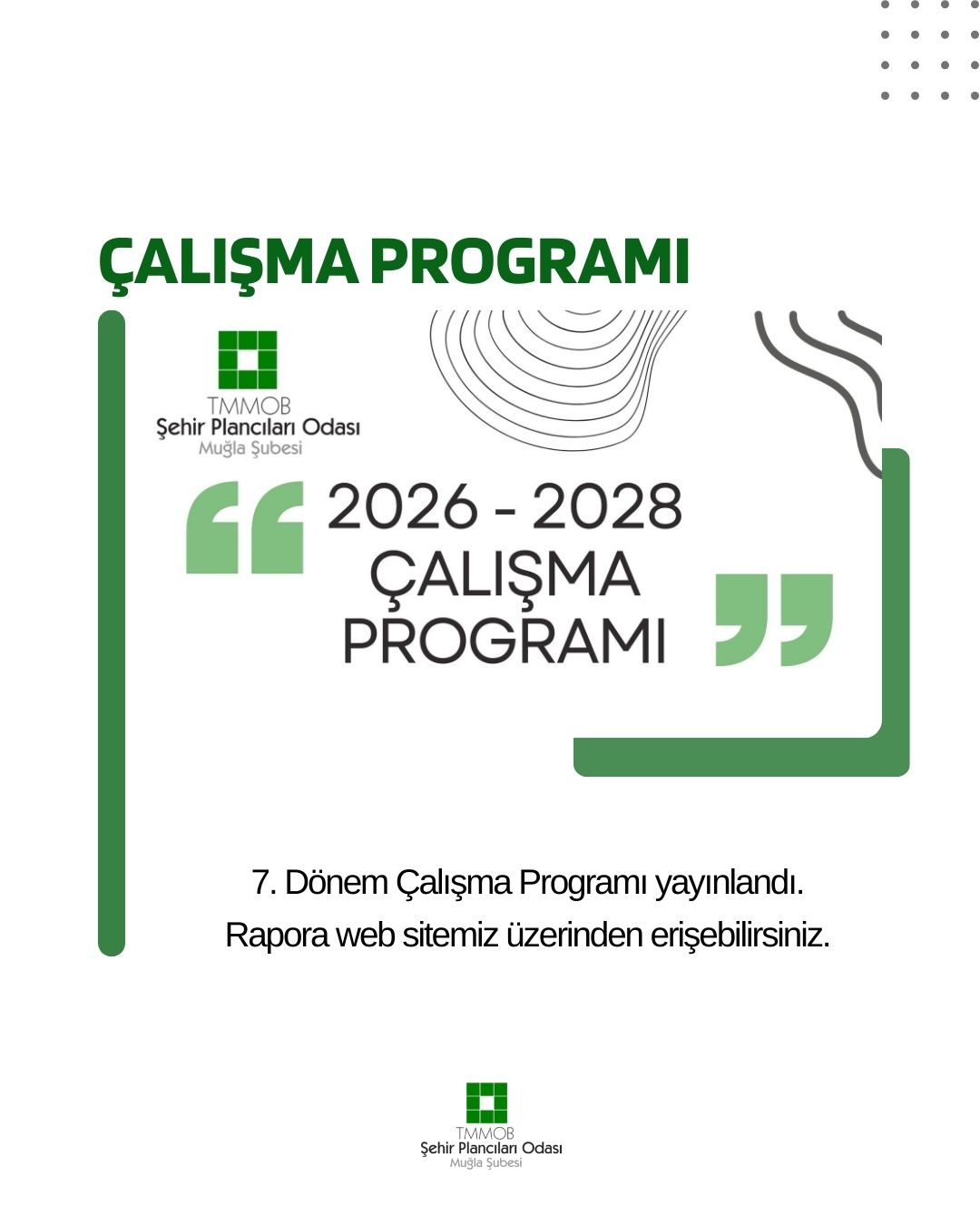 TMMOB Şehir Plancıları Odası Muğla Şubesi`nin 7. Dönem (2026–2028) Çalışma Programı yayınlanmıştır.