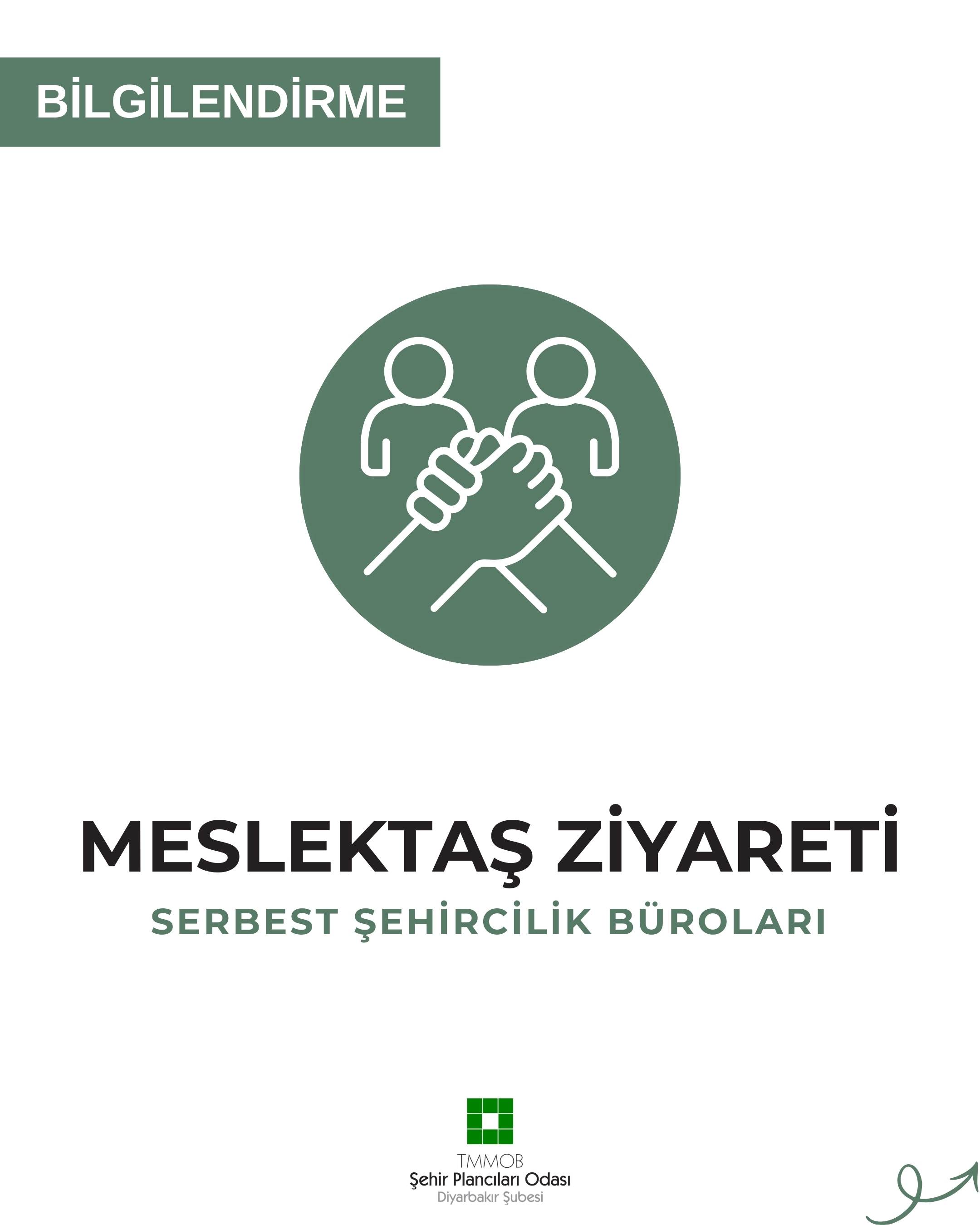 TMMOB Şehir Plancıları Odası Diyarbakır Şubesi Yönetim Kurulu üyelerinin katılımıyla Diyarbakır`daki Serbest Şehircilik Bürolarımızda mesleğini icra eden meslektaşlarımız ziyaret edilmiştir. Görüşmelerde şehir planlama disiplininin çalışma alanlarına dair mevcut durum değerlendirilmiş; Serbest Şehircilik Bürolarının sorunları üzerine istişare edilerek öne çıkan talep ve öneriler not edilmiştir.