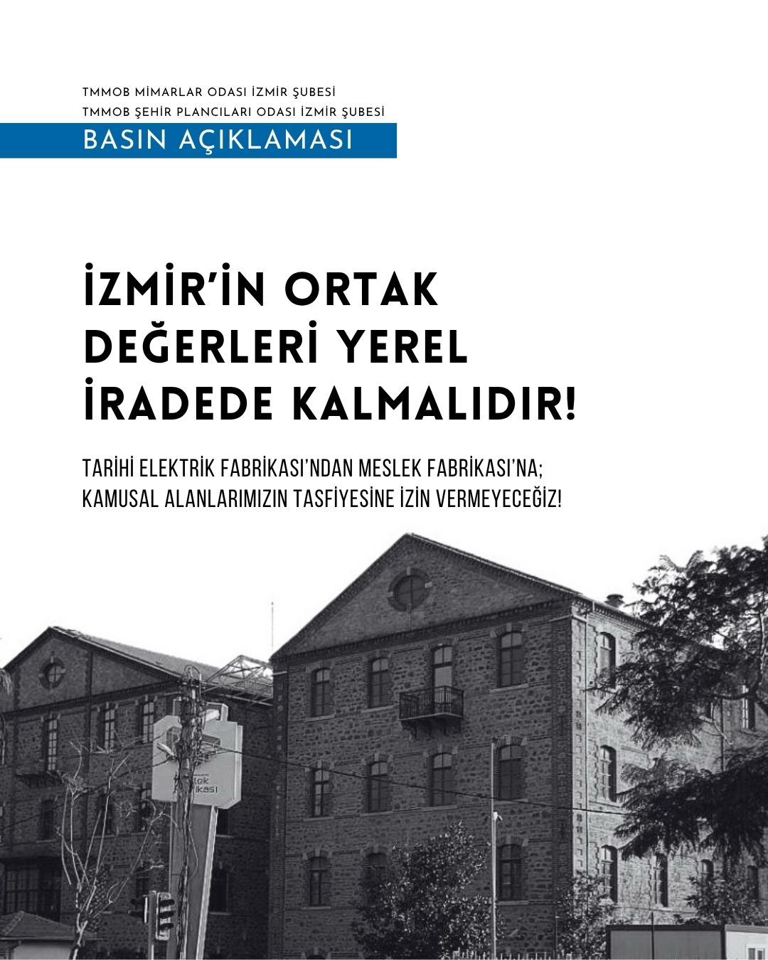 Tarihi Elektrik Fabrikası‘ndan Meslek Fabrikası‘na: Kamusal Alanlarımızın Tasfiyesine İzin Vermeyeceğiz!