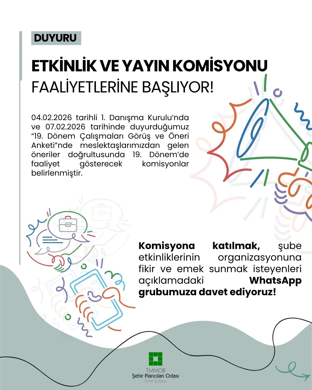 Bu etkinlik, Şubemizin 19. Dönem çalışmaları kapsamında kurulan Etkinlik ve Yayın Komisyonu`nun ilk etkinliğidir. Komisyona katılmak, şube etkinliklerinin organizasyonuna fikir ve emek sunmak isteyenleri WhatsApp grubumuza davet ediyoruz: