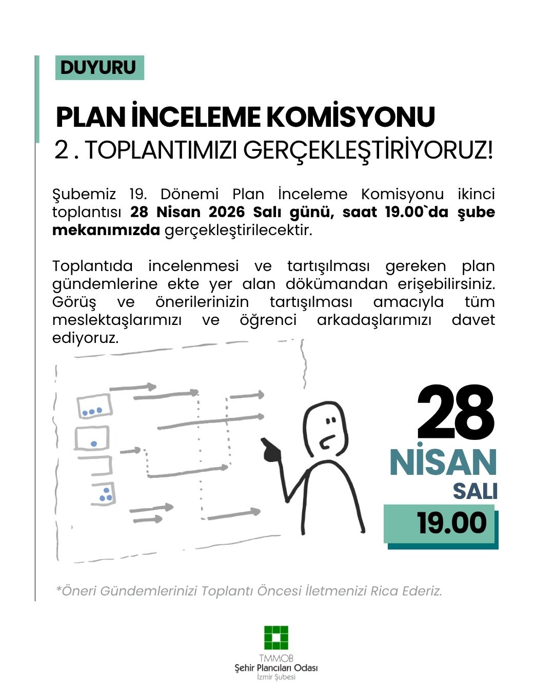 Toplantıda incelenmesi ve tartışılması gereken plan gündemlerine ekte yer alan dökümandan erişebilirsiniz. Görüş ve önerilerinizin tartışılması amacıyla tüm meslektaşlarımızı ve öğrenci arkadaşlarımızı davet ediyoruz.