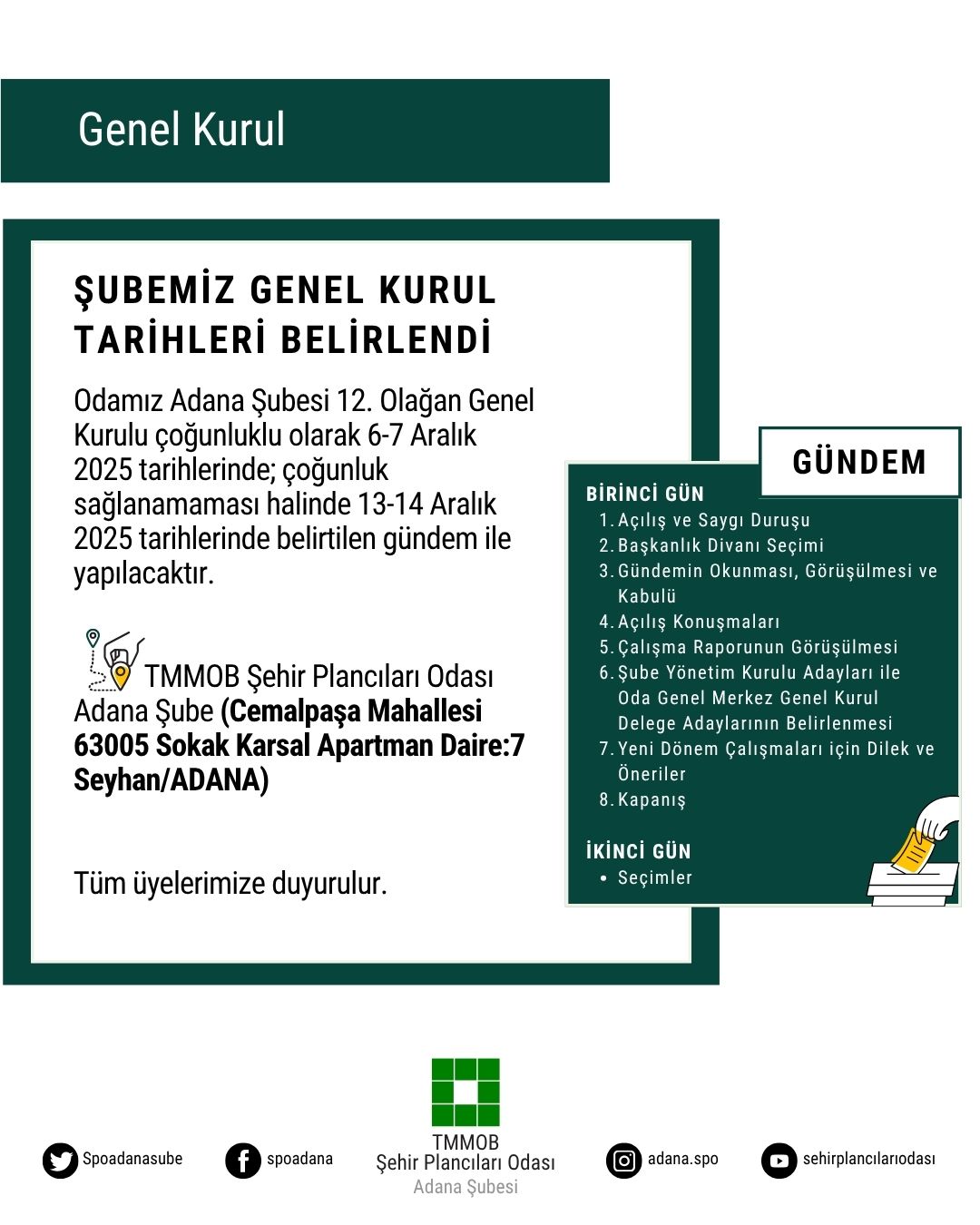 • e-Posta: spoadana@spo.org.tr